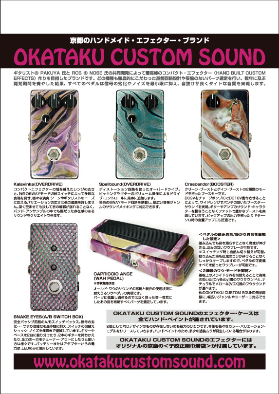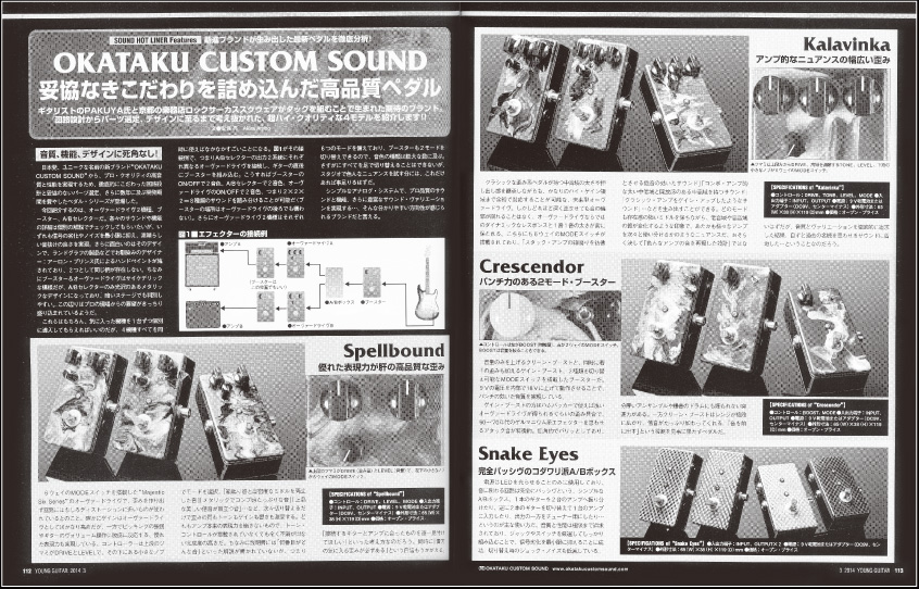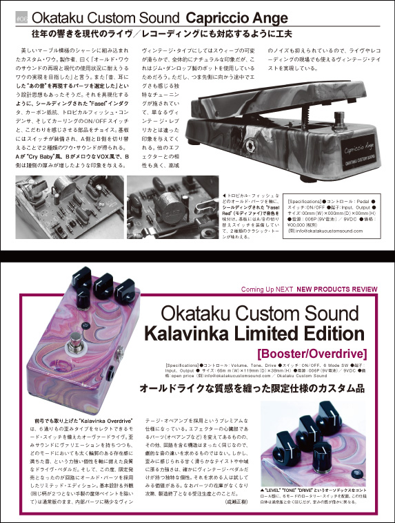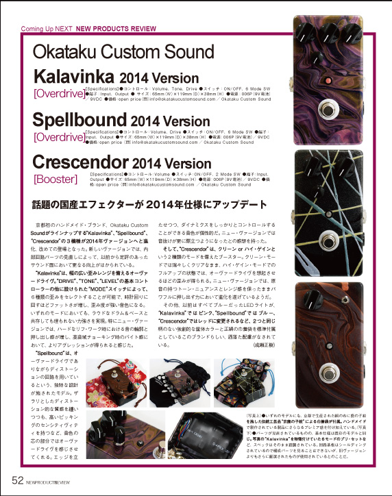 2013年7月号掲載の記事より 2014年3月号掲載の記事より THE EFFECTOR BOOK vol.24号掲載の記事より THE EFFECTOR BOOK vol.25号掲載の記事より 2014楽器フェア公式ガイドブックより 2014楽器フェア「OKATAKU CUSTOM SOUNDブース」